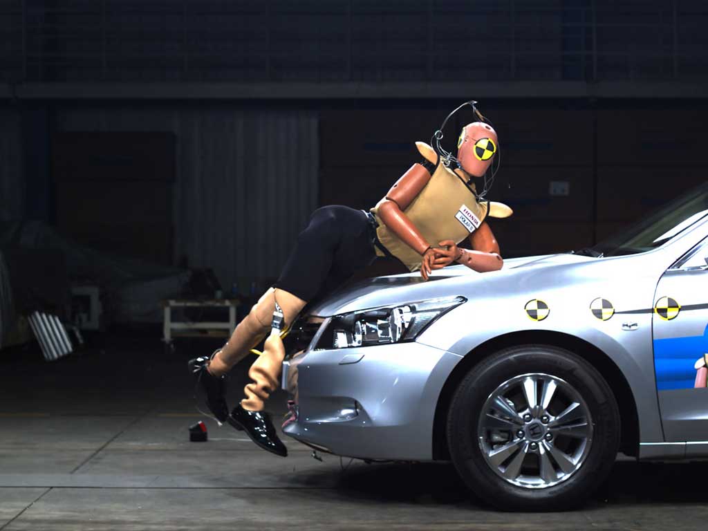 En esta prueba se realizan dos atropellos, uno a un adulto y el otro a un niño, ambos a 40 km/h. Euroncap dice que es muy difícil obtener resultados fiables utilizando un dummy completo porque no es posible calcular donde golpeará con la cabeza y por eso se analizan 3 partes: impacto de la pierna contra paragolpes, impacto de la pelvis con el borde del capó, impacto de la cabeza de un niño en medio del capó y el impacto de la cabeza de un adulto contra la zona del parabrisas.